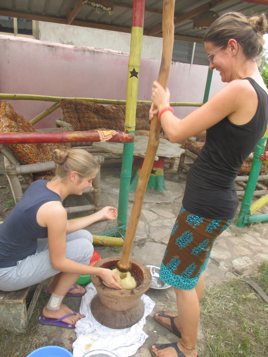 Fufu gehört zu den Nationalgerichten, doch bevor man Fufu genießen kann muss man ordentlich Stampfen...
