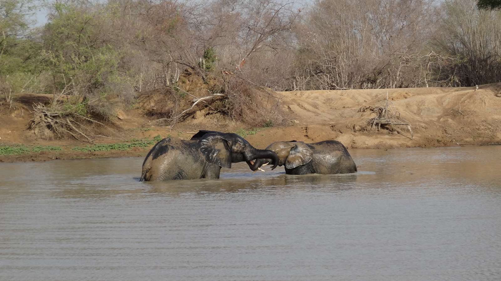 Besonders an der Wasserstelle tümmeln sich die Elefanten