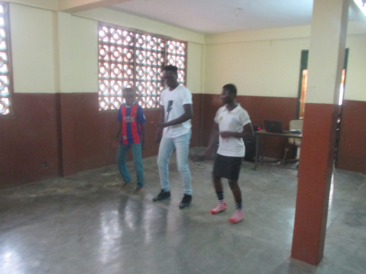 Ein älterer Schützling des Projekts bringt den Jüngeren einen neuen Tanz bei.